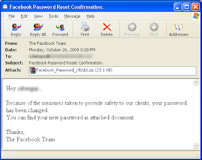 Un nuevo virus se está propagando a través de redes sociales, esta vez, a través de Facebook, el nuevo gusano conocido como Bredolab se esconde a sí mismo como un “correo electrónico de confirmación de restablecimiento de contraseña”, y parece provenir de Facebook. Y como suele suceder con estos virus maliciosos adjunta un archivo que pretende contener una nueva contraseña.