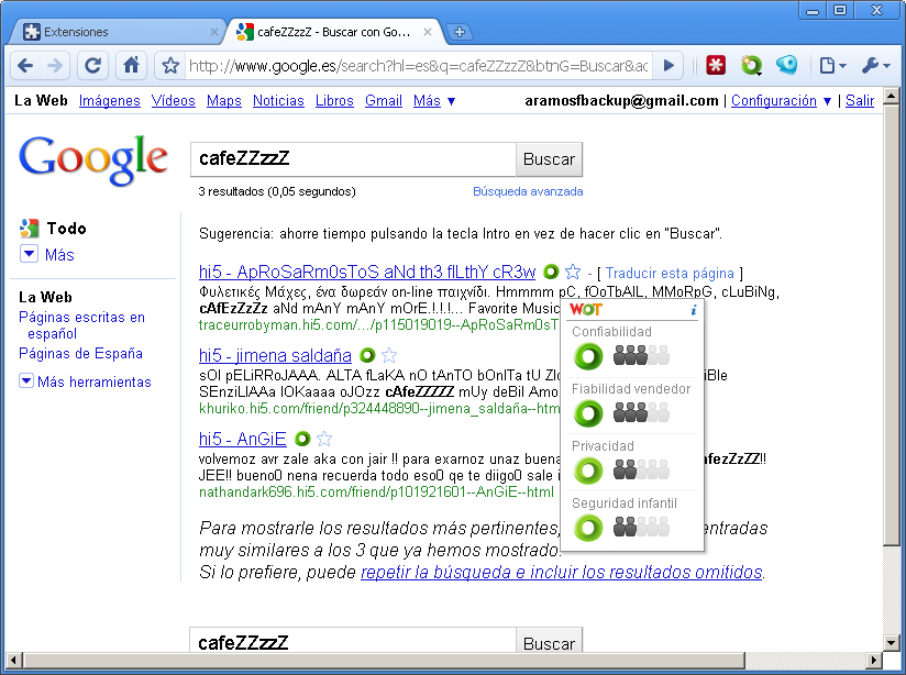 Con Web Of Ttrust se facilitará información de la fiabilidad sobre un página determinada y las posibilidades de que contengan malware, engaños a usuarios o envíen spam.