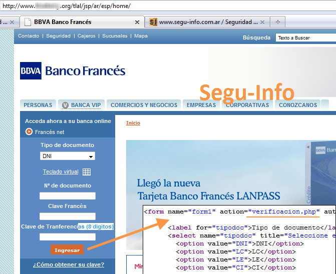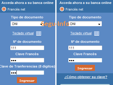 Un datos muy importante que debe notarse es la diferencia entre el formulario falso (a la izda) y el verdadero (a la dcha):